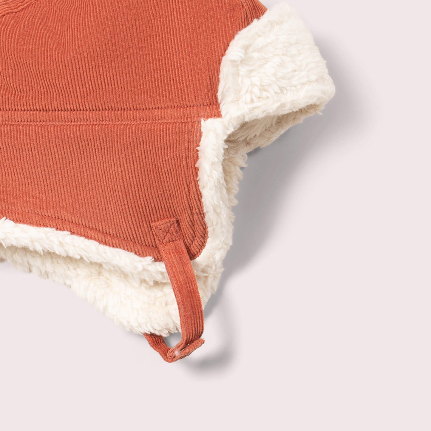 Cosy hat, fully lined in soft organic sherpa. Comes with a handy adjustable chin strap so it'll stay on however much fun they're having, plus this style is extra long at the back so it's super snug.