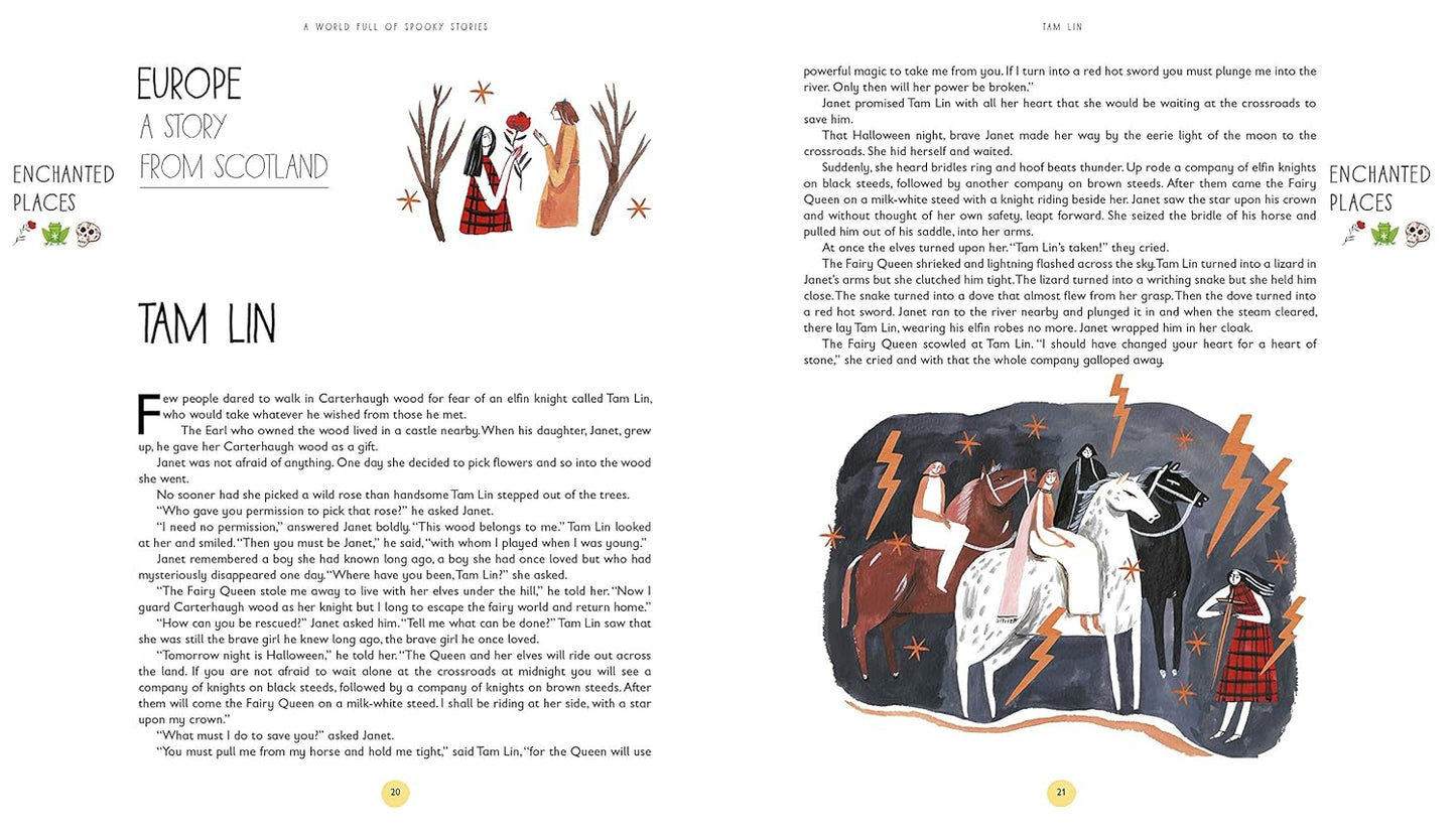 Features stories from Germany, Czechoslovakia, Russia, Africa, Brazil, Japan, Australia, India, UK, Canada, France, China, Ireland, Syria, Korea, Sweden, Egypt, Iceland, New Zealand, Arabia, Spain, Tibet, Iran, Greece. The tales are expertly retold by Angela McAllister for spooky fun for the whole family and illustrated by Romanian born Madalina Andronic whose beautifully spooky images bring these stories to life before your very eyes.