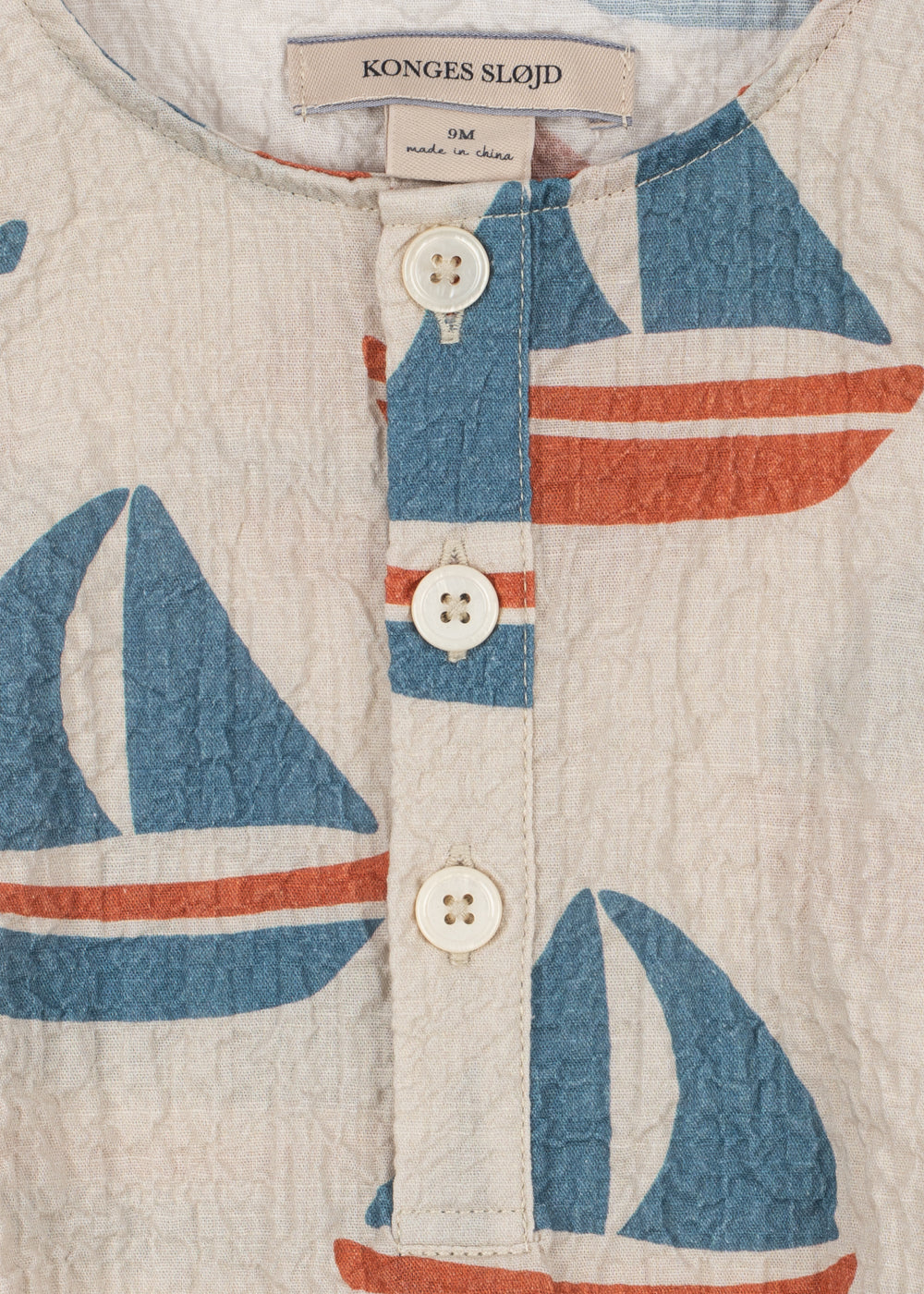 Romper made in a soft seersucker fabric. Practical design with convenient push buttons at leg openings that makes changing your baby easier.
